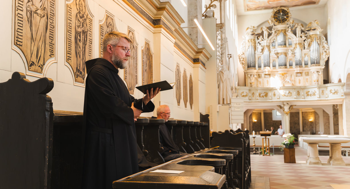 So sind Sie eingeladen zum Rhythmus der Gebetszeiten im Wechsel mit Arbeit und Zeiten für Lektüre und Austausch. K2623